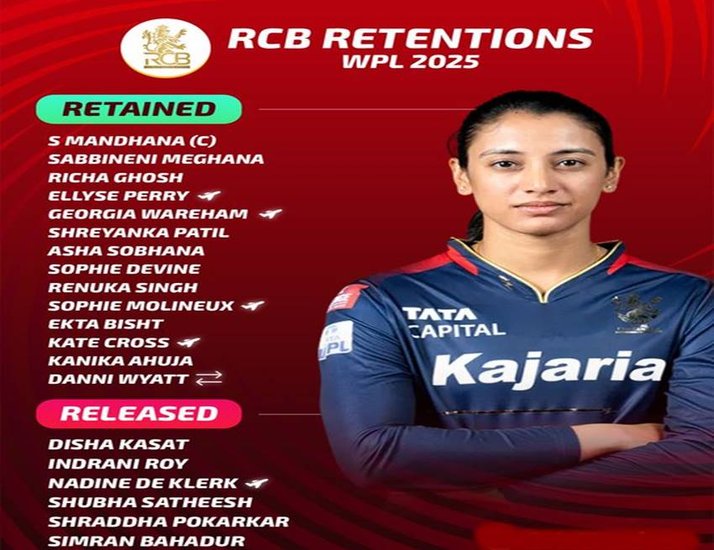 RCB द्वारा WPL 2025 के लिए रिटेन किए गए खिलाड़ियों के नाम