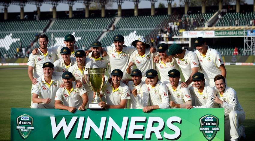 ऑस्ट्रेलिया ने 25 मार्च 2022 को पाकिस्तान के खिलाफ 1-0 से टेस्ट सीरीज जीत ली। उसने टेस्ट सीरीज के आखिरी मैच में पाकिस्तान को 115 रन से हराया। इस जीत से ऑस्ट्रेलिया की आईसीसी वर्ल्ड टेस्ट चैंपियनशिप में स्थिति जहां मजबूत हुई, वहीं पाकिस्तान के हारने से टीम इंडिया को फायदा हुआ। भारतीय टीम विश्व टेस्ट चैंपियनशिप की ताजा अंक तालिका में अब तीसरे नंबर पर पहुंच गई है। ऑस्ट्रेलिया पहले और साउथ अफ्रीका तीसरे नंबर पर है। पाकिस्तान की टीम दो स्थान खिसकर चौथे नंबर पर पहुंच गई है।