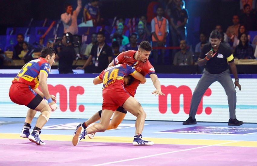 यूपी की ओर से मोनू गोयत ने अपना सुपरटैन पूरा किया। वहीं दिल्ली के लिए सोमवीर ने अपना हाईफाइव पूरा किया। 6 मिनट का खेल रह गया है।