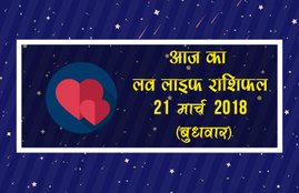 आज का प्रेम राशिफल, 21 मार्च 2018: पार्टनर से मिलेगी अच्छी खबर, इस राशि के वाले को मिल सकता है शादी का प्रपोजल Today Love Live Rashifal, Horoscope 2018: पार्टनर के साथ कोई जोर जबरदस्ती ना करें। पति-पत्नी के बीच तालमेल बना रहेगा।… March 21, 2018 10:11 IST