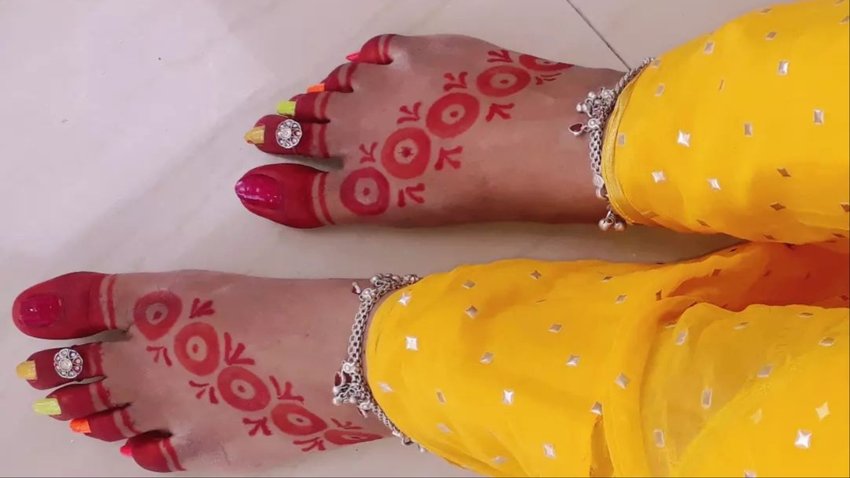 करवा चौथ आलता डिजाइन-Alta design on leg simple photo