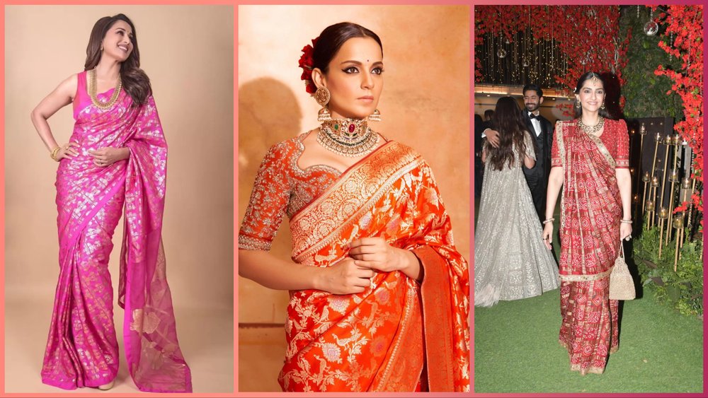 अगर आपके घर में शादी है या फिर कोई फंक्शन है और आपको शॉपिंग करने का मौका नहीं मिला है तो चिंता की कोई बात नहीं। वैसे भी औरतों के वॉर्डरोब में इतनी साड़ियां होती हैं कि वो रोज एक नया निकालकर भी पहनें तो कमी नहीं पड़ेगी। साथ ही आपने अलग-अलग फंक्शन पर अलग-अलग साड़ियां तो खरीदी ही होंगी या फिर कभी किसी से मिली होंगी तो आप इन्हीं साड़ियों को अलग-अलग फंक्शन में ट्राई कर सकते हैं। जैसे कि बनारसी साड़ी, घारचोला साड़ी, सिल्क साड़ी या फिर कांजीवरम सिल्क साड़ी। तो, आइए जानते हैं कैसे इन साड़ियों को एक नए लुक से खाथ ट्राई करें।