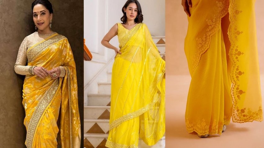 बसंत पंचमी पर पहनें ये स्टाइलिश पीली साड़ियां-Yellow colour saree for saraswati puja