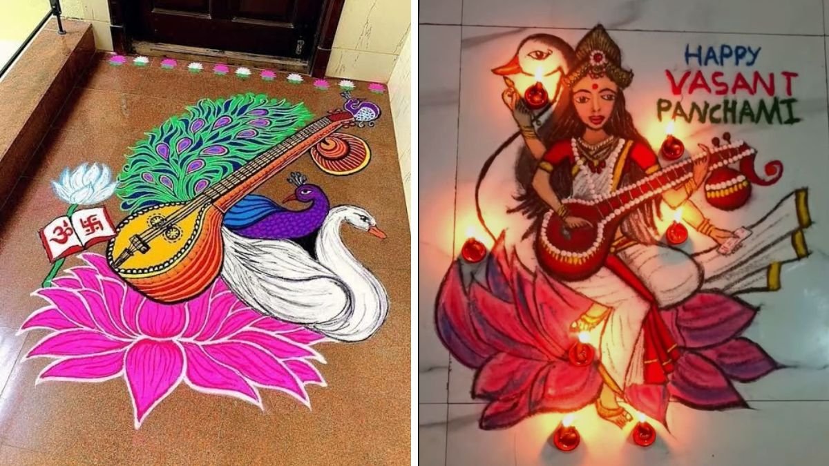 Basant Panchami 2026 Rangoli Designs: बसंत पंचमी यानी सरस्वती पूजा का त्योहार हर साल माघ मास के शुक्ल पक्ष की पंचमी तिथि को मनाया जाता है। यह पर्व ज्ञान, विद्या और कला की देवी मां सरस्वती को समर्पित होता है।