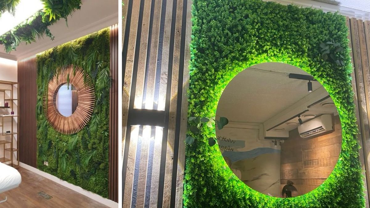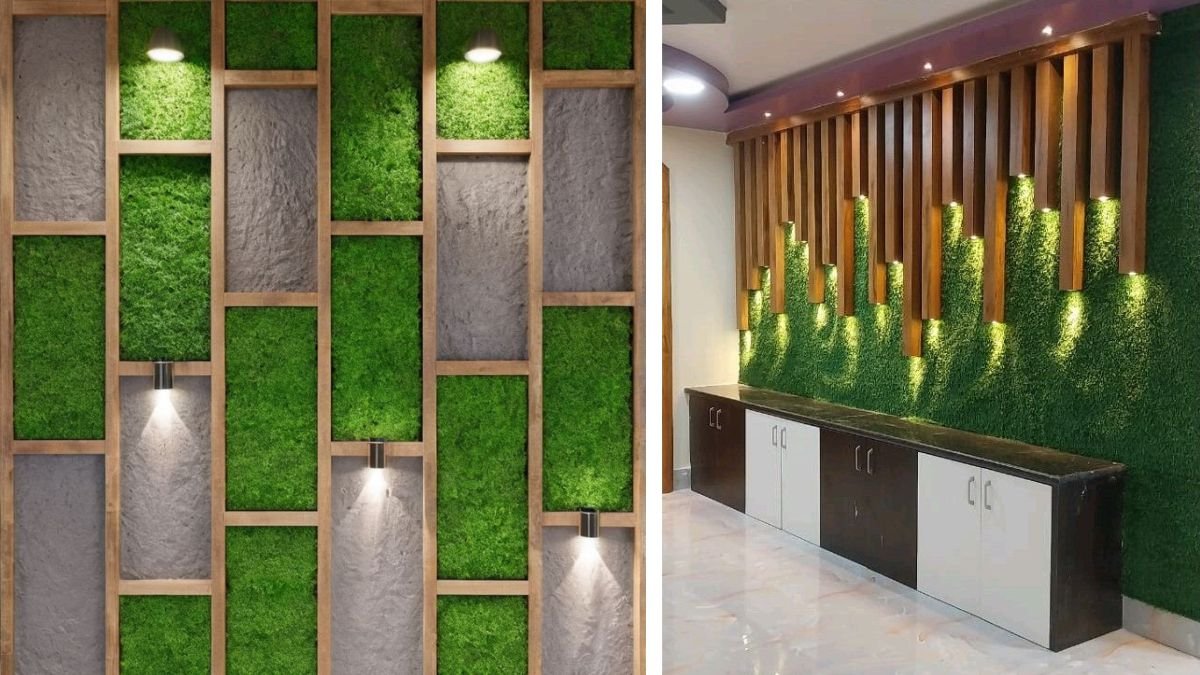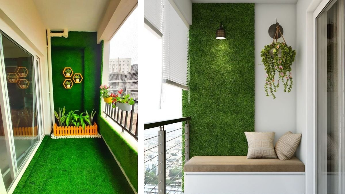 इसमें में दीवार को कृत्रिम घास से ढका गया है। यह देखने में काफी हरा-भरा लगेगा। घर को सजाने का यह बजट-अनुकूल तरीका है। इसे आप बॉलकनी में ट्राई कर सकते हैं।