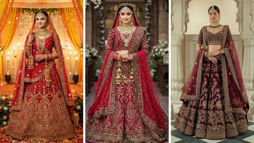 आप इस लाल ब्राइडल लहंगे को ट्राई कर सकती हैं। इस लहंगे को पहनकर आप पारंपरिक और रॉयल लुक पा सकती हैं। हैवी गोल्ड एम्ब्रॉयडरी, चौड़ा घेर, बारीक कारीगरी और मैचिंग दुपट्टा इसे शादी, फेरे और रिसेप्शन के लिए बेहद खास बनाते हैं।