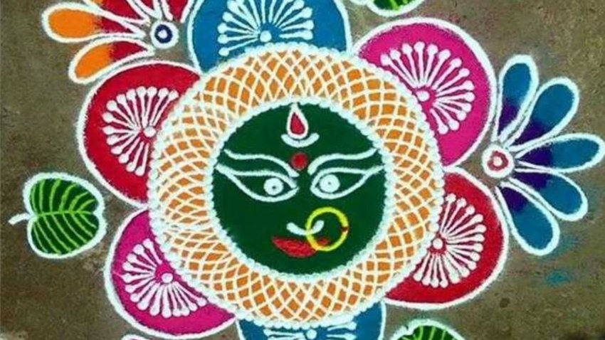 नवरात्रि के सातवें दिन आप मां दुर्गा के रूप को रंगोली में उतार सकते हैं। आप अलग-अलग रंगों से इसको आसानी से सजा भी सकते हैं। ध्यान रखें कि इस रंगोली को पूजा घर में ही बनाएं, जिससे किसी का पैर न लग पाए।