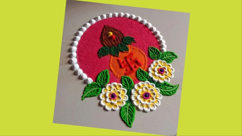 आप इस दिन कलश वाली बेहतरीन रंगोली डिजाइन को भी बना सकते हैं। इसके साथ ही आप रंगोली को कुछ फूलों से भी सजा सकते हैं। आटे और लाल रोली की मदद से इस रंगोली डिजाइन को आसानी से तैयार किया जा सकता है।