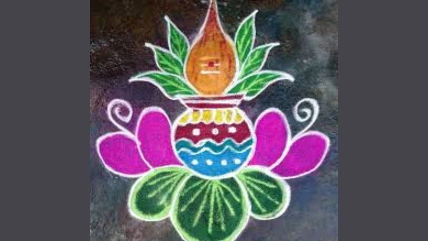 कलश वाली रंगोली से करें मां दुर्गा का स्वागत