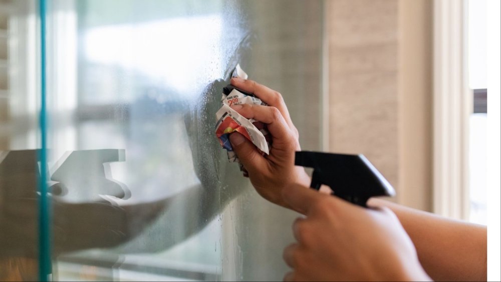 -सिरके के घोल को दाग वाले गिलास पर सीधे स्प्रे करें।