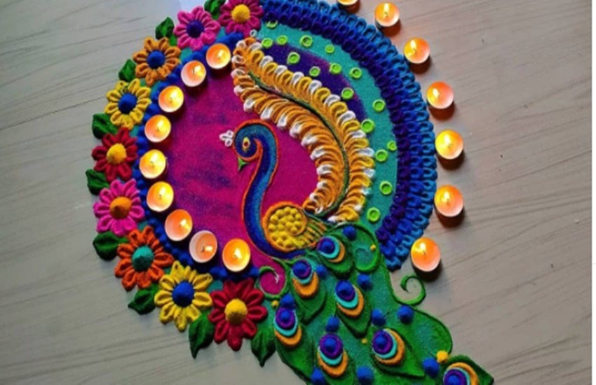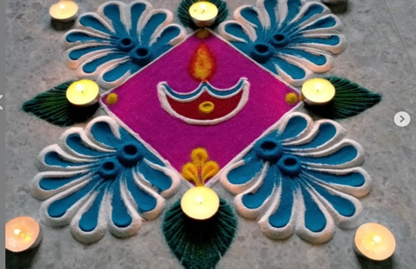 रंगोली को दीये से सजाने पर वह बेहद ही खूबसूरत लगती है।
