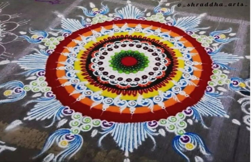 अगर आप रंगोली बनाने के शौकीन हैं तो आप इस डिजाइन से अपने घर के आंगन को सजा सकते हैं।