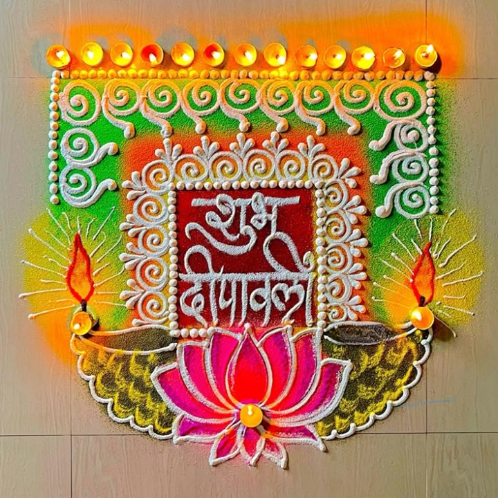 दिवाली पर आप इस रंगोली डिजाइन को भी बना सकते हैं। इस पर आप शुभ दिवाली या शुभ दीपावली भी लिख सकते हैं।