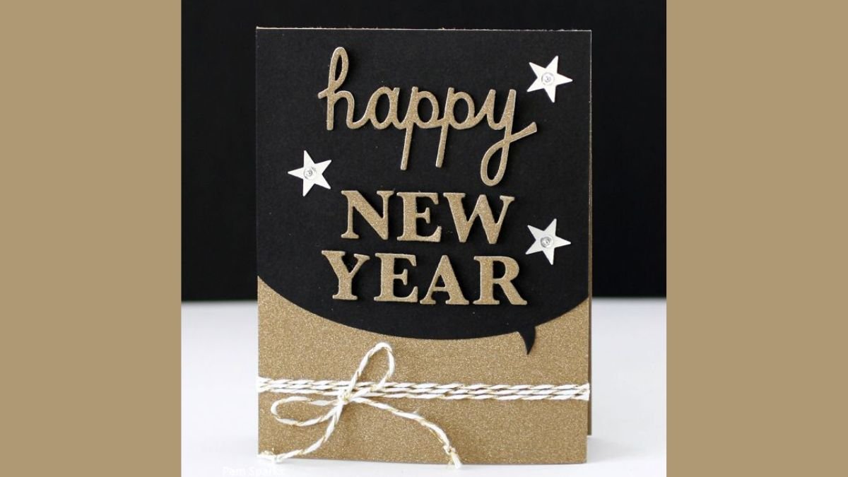 यह ग्रीटिंग कार्ड स्टाइलिश और सिंपल है। इसे आप अपने हाथों से बहुत आसानी से ही तैयार कर सकते हैं। इस ग्रीटिंग कार्ड पर Happy NEW YEAR गोल्डन लेटरिंग में लिखा है, जो काफी सुंदर भी लग रहा है। वहीं, नीचे सफेद डोरी का बंधन कार्ड को हैंडमेड और एलीगेंट टच देता है।