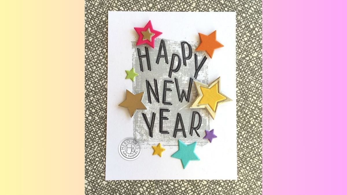 आप आपनों को इस ग्रीटिंग कार्ड के साथ नए साल की शुभकामनाएं दे सकते हैं। इस कार्ड का सफेद बैकग्राउंड रंगीन और छोटे सितारों से सजाया गया है, जो काफी सुंदर दिख रहा है। आप इसे आसानी से तैयार भी कर सकते हैं।