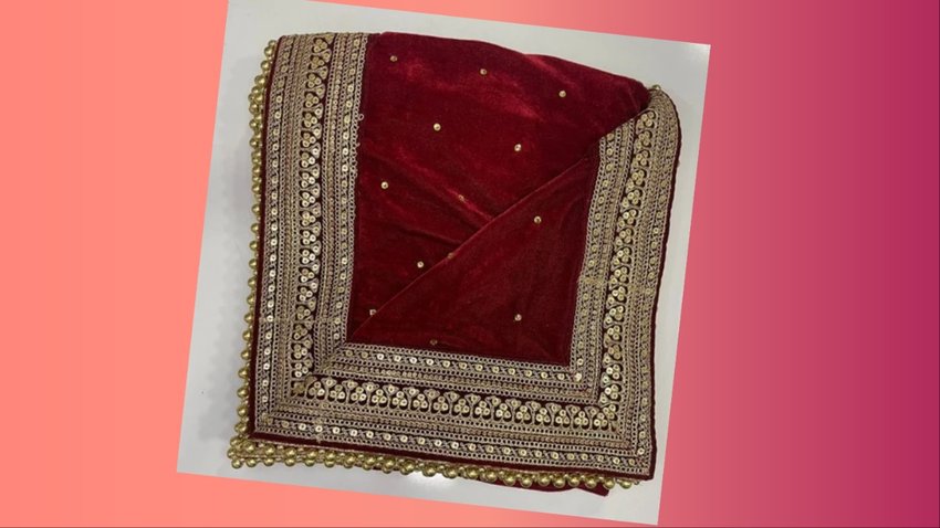दुल्हन के लिए मैरून वेलवेट दुपट्टा-Maroon velvet dupatta for bride