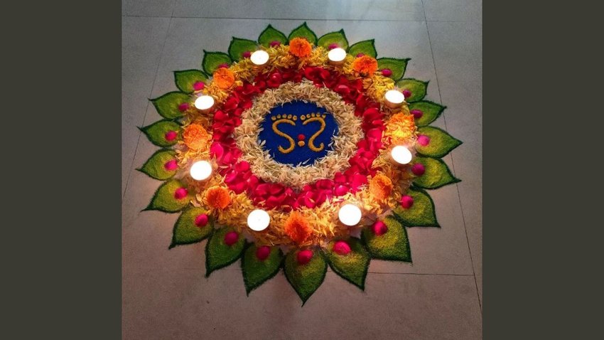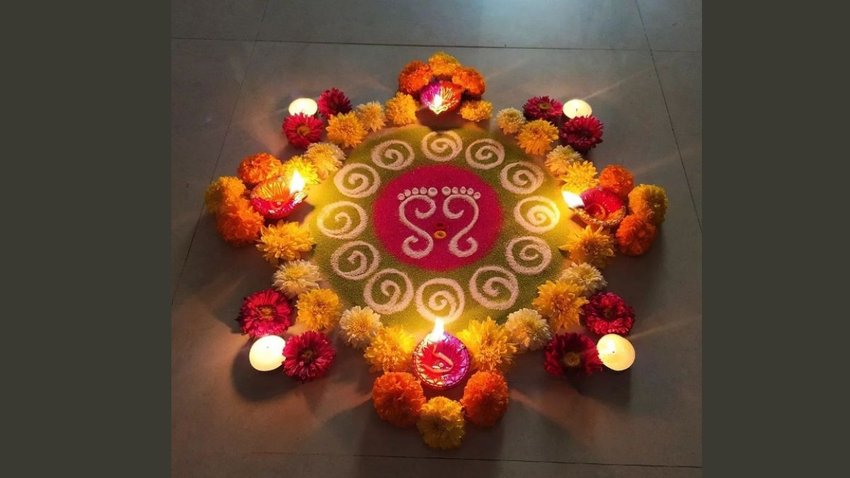 आप इस तरह फूलों का इस्तेमाल कर रंगोली डिजाइन बना सकते हैं। इन्हें बनाने में भी बेहद कम समय लगेगा, साथ ही ये भी दिखने में बेहद खूबसूरत लगने वाली हैं।