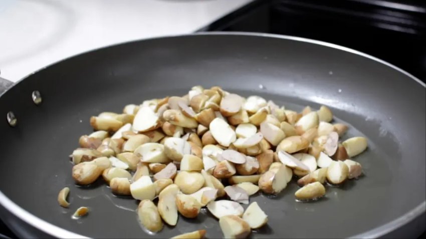 तो आपको करना ये है कि पके हुए कटहल से बीज निकाल लें और फिर इसे धो लें। अब एक कड़ाही लें और इसमें थोड़ा सा नमक डालें और इसे गर्म करें। फिर इसमें बीज डालें और हल्के हाथों से भूनते रहें। तब तक जब तक आपको इससे आवाज न आने लगे या फिट इसके फटने की आवाज न आने लगे। जब ये लाल हो जाए और इसका छिलका निकलने लगे को गैस बंद करें। इसके बाद इससे बीज निकाल लें और फिर इसमें नमक और लाल मिर्च मिलाएं। इसके बाद इसे खाएं।