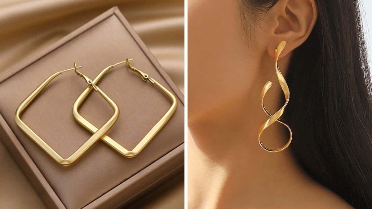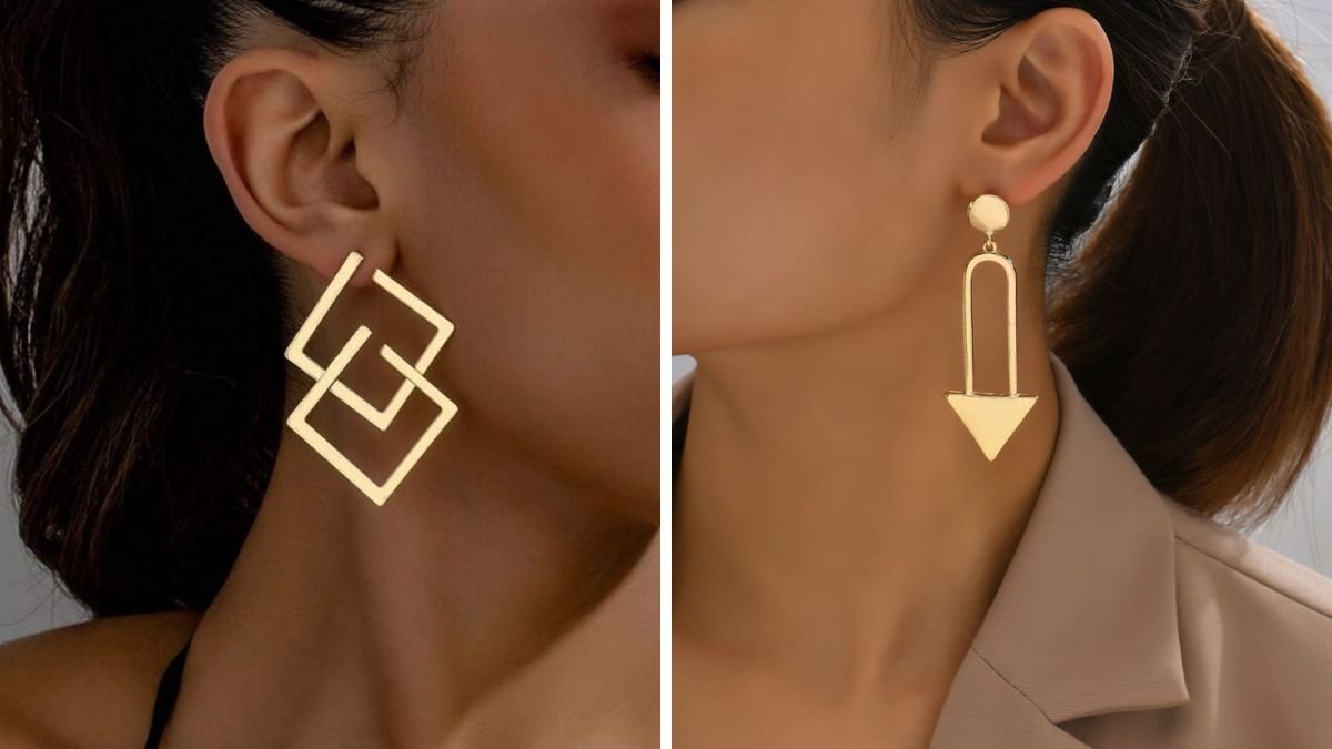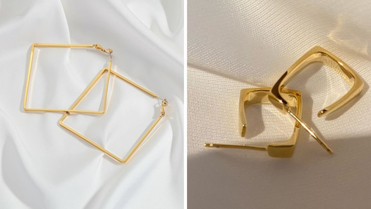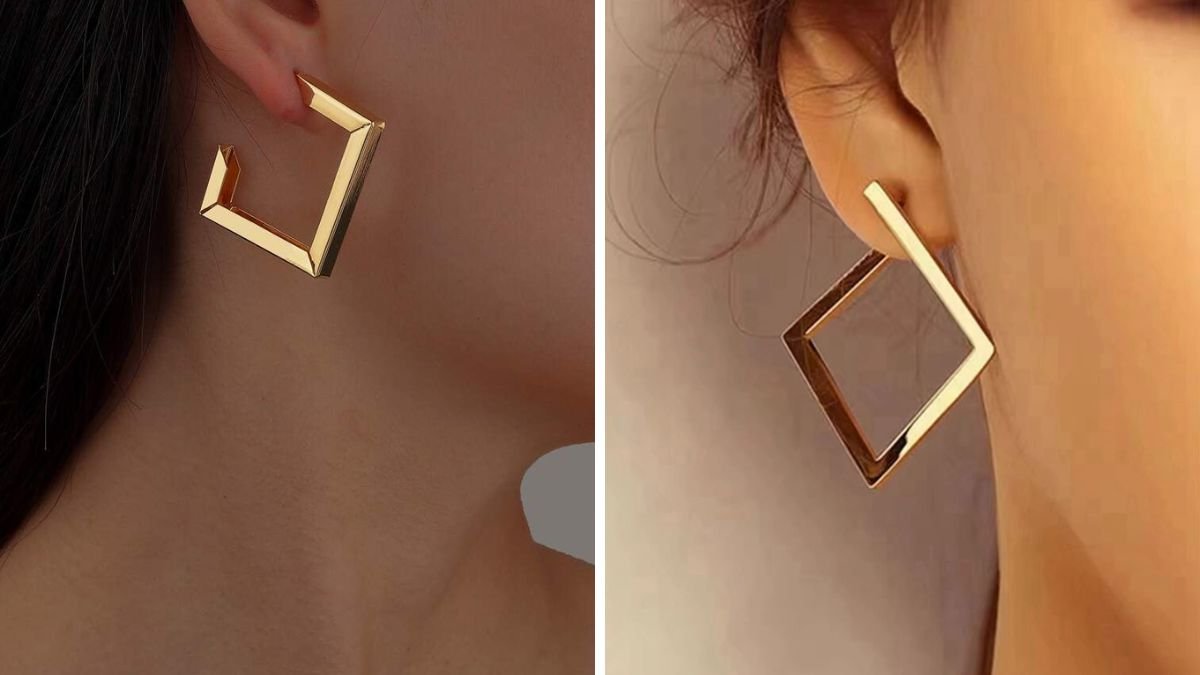 आप डबल स्क्वेयर गोल्ड इयररिंग्स को ट्राई कर सकती हैं। ये बेहद ट्रेंडी और मॉडर्न लुक देते हैं। ऑफिस के फॉर्मल आउटफिट से लेकर पार्टी वियर के साथ भी ये आसानी से मैच हो जाते हैं।
