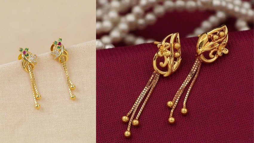 गिफ्ट में देने के लिए इस तरह के Latest Gold Hanging Earrings भी आप ऑर्डर कर सकते हैं। ये उनको जरूर पसंद आएंगे।