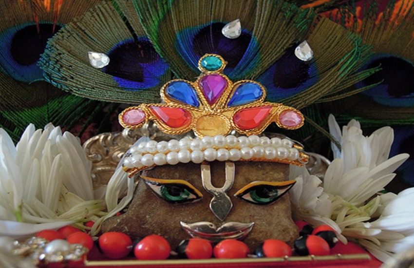 2. सुंदर मोरपंख से बना मुकुट लगाकर आप गोवर्धन को सजा सकते हैं।