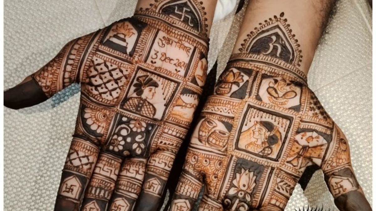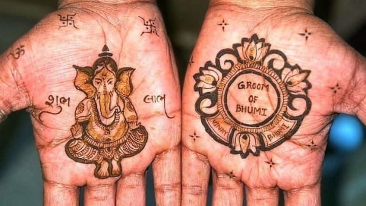 शादी की तारीक और होने वाली पत्नी का नाम भी आप मेहंदी में लगा सकते हैं। यह दिखने में काफी आकर्षक नजर आएगा। साथ ही आपको डिसेंट लुक भी देगा।