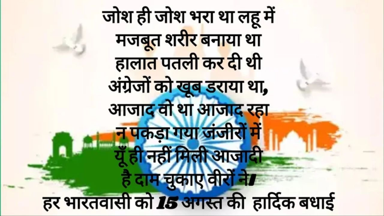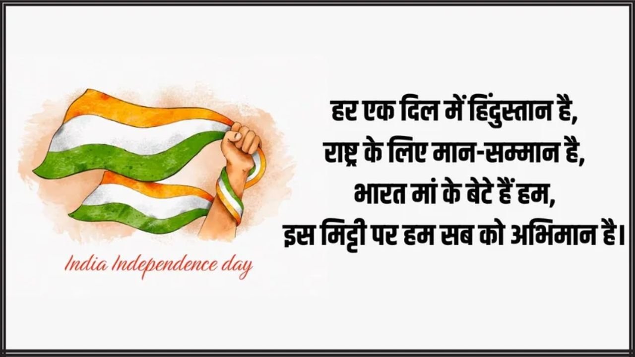 15 August ki Hardik Shubhkamnaye in Hindi: स्वतंत्रता दिवस 15 अगस्त यानी शुक्रवार को धूमधाम से मनाया जाएगा। इसके लिए स्कूल-कॉलेज से लेकर दफ्तरों में विशेष तैयारी चल रही हैं। इस दिन हर भारतीय के दिल में देशभक्ति का जोश होता है। सभी मिलकर देश के वीर जवानों और स्वतंत्रता संग्राम सैनानियों को याद करते हैं।