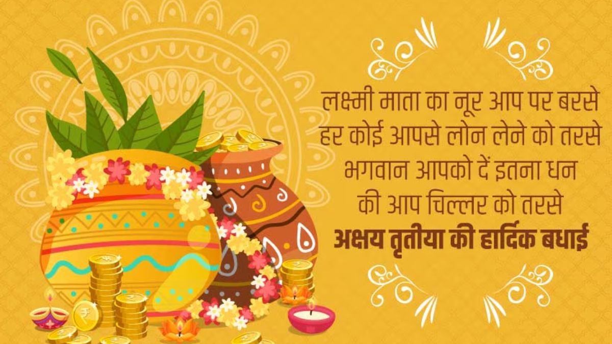 Akshaya Tritiya 2025 Wishes, Image, Quotes in Hindi (अक्षय तृतीया की हार्दिक शुभकामनाएं): अक्षय तृतीया को लेकर आज सुबह से हर तरफ उत्साह और उल्लास का माहौल देखने को मिल रहा है। मंदिरों से लेकर घरों में सुबह से भगवान विष्णु और माता लक्ष्मी की पूजा की जा रही है। यह दिन मांगलिक कार्यों के लिए बेहद शुभ माना जाता है। धार्मिक मान्यताओं के मुताबिक, इस दिन कोई भी काम करने से उसका फल जरूर मिलता है। कई लोग इस दिन को वैवाहिक कार्यक्रम, धार्मिक अनुष्ठान, गृह प्रवेश, व्यापार, जप-तप और पूजा-पाठ के लिए चुनते हैं। अक्षय तृतीया के शुभ अवसर पर लोग अपने दोस्तों, रिश्तेदारों और सगे-संबंधियों को शुभकामना संदेश भेजकर उन्हें बधाई भी देते हैं। ऐसे में हम आपके लिए कुछ बेहतरीन बधाई संदेश लेकर आए हैं, जिसको आप अपने करीबियों को भेजकर अक्षय तृतीया की शुभकामना दे सकते हैं।