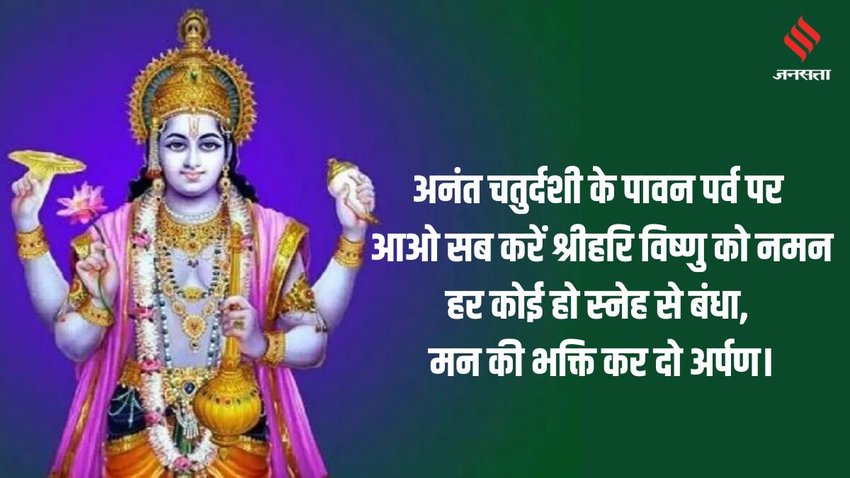 भक्त इस खास पर्व को बेहद खास अंदाज में मनाते हैं और इसकी शुरुआत वे एक-दूसरे को अनंत चतुर्दशी के शुभकामना संदेश भेजकर करते हैं। इसी कड़ी में हम भी यहां आपके लिए अनंत चतुर्दशी के कुछ ऐसे ही चुनिंदा संदेश लेकर आए हैं। आप अपने दोस्तों, रिश्तेदारों और करीबियों को सोशल मीडिया के माध्यम से ये संदेश भेजकर अनंत चतुर्दशी की शुभकामनाएं दे सकते हैं। आइए एक नजर डालते हैं इनपर-