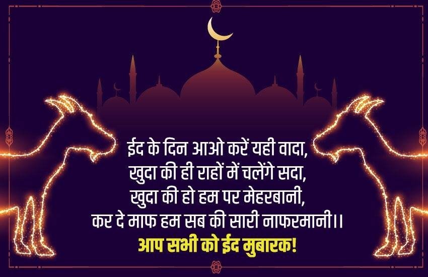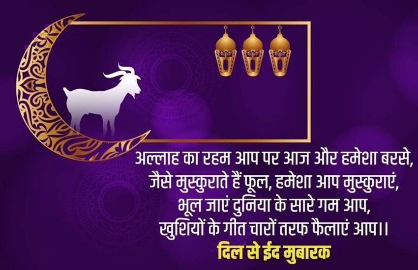 रमजान महीना खत्म होने के करीब 70 दिन बाद मनाए जाने वाले इस पर्व में बकरे की कुर्बानी दी जाती है। फिर इसे गरीबों और जरूरतमंदों में बांटने क विधान है। इस खास मौके पर ईद-अल-अजहा की मुबारकबाद देने के लिए लोग मैसेज, शायरी, कोट्स और फोटोज भेजकर दे सकते हैं।
