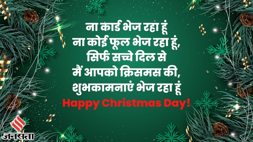 आप भी क्रिस्मस डे के मौके पर अपने साथियों और दोस्तों को बधाई देना चाहते हैं तो कुछ खूबसूरत मैसेज और कोट्स के साथ शुभकामना संदेश भेज सकते हैं। इस दिन को सेलिब्रेट करने के लिए आप इन खूबसूरत मैसेज का सहारा लें और अपने दोस्तों को क्रिसमस डे की बधाई दें।