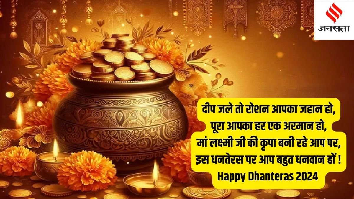 Happy Dhanteras 2024 Wishes Images, Shayari, Quotes, Status, Messages: ये धनतेरस आपके लिए शुभ हो। धनतेरस इस बार 29 अक्टूबर 2024 यानी आज है। इस दिन शुभ चीजों की खरीदारी की जाती है। इसके अलावा इस दिन भगवान धन्वंतरि और कुबेर की भी पूजा की जाती है। इस दिन धनिया और नमक जैसी चीजों की खरीदारी की जाती है। ऐसे में आप अपनों के साथ ये धनतेरस की शुभकामनाएं संदेश शेयर कर सकते हैं और उन्हें शुभ धनतेरस कह सकते हैं।
