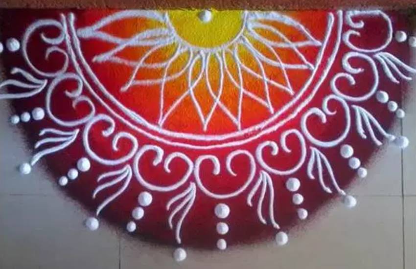 उत्तर भारत में प्रमुख त्योहारों पर रंगोली बनाने का चलन है। लेकिन दक्षिण भारत में हर दिन रंगोली बनाई जाती है और आंगन में निर्मित रहती है। इसे घर की सुंदरता के साथ सौभाग्य भी बढ़ता है।
