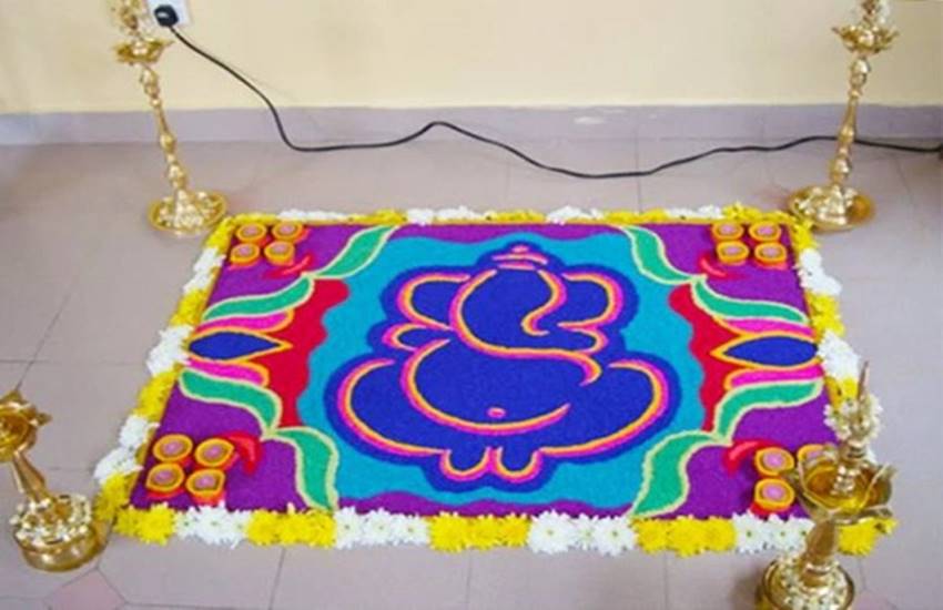 फूलों की रंगोली के साथ आप भगवान की प्रतिमा भी स्थापित कर सकते हैं। इससे घर में खुशियों के आने की मान्यता है।