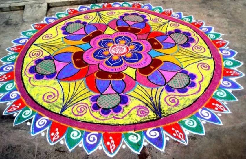 यह रंगोली भी काफी खूबसूरत है। आप दिवाली के मौके पर इसे भी अपने घर के आंगन में बना सकते हैं।