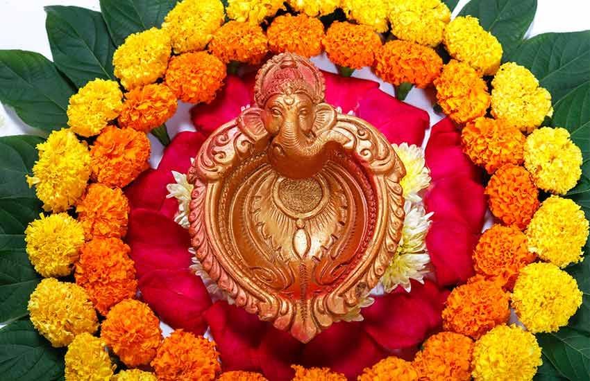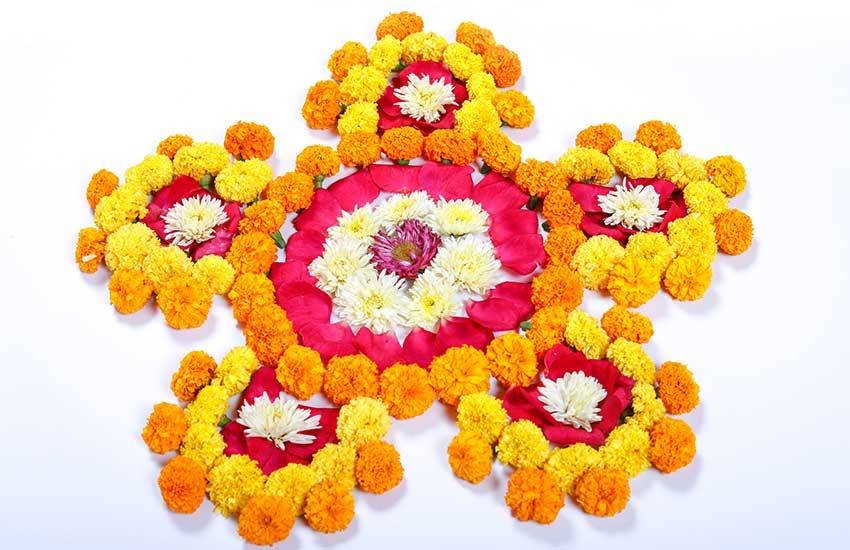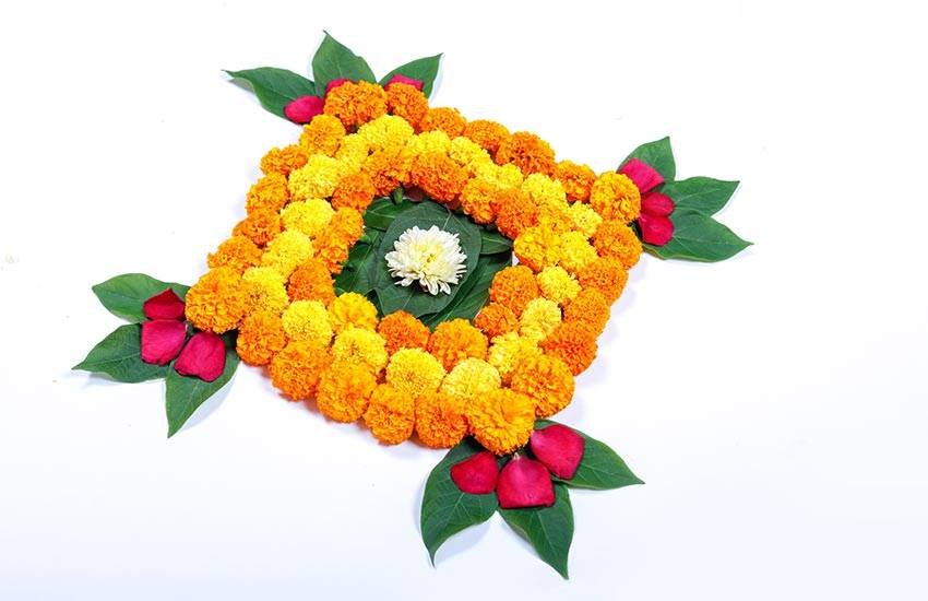 फूलों की रंगोली के साथ आप भगवान की प्रतिमा भी स्थापित कर सकते हैं। इससे घर में खुशियों के आने की मान्यता है।
