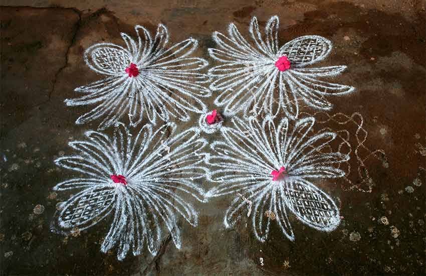 उत्तर भारत में प्रमुख त्योहारों पर रंगोली बनाने का चलन है। लेकिन दक्षिण भारत में हर दिन रंगोली बनाई जाती है और आंगन में निर्मित रहती है। इसे घर की सुंदरता के साथ सौभाग्य भी बढ़ता है।