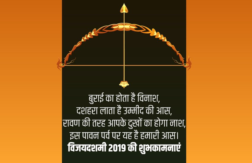 बुराई का होता है विनाश, दशहरा लाता है उम्मीद की आस, रावण की तरह आपके दुखों का होगा नाश, इस पावन पर्व पर यह है हमारी आस। विजयदशमी 2019 की शुभकामनाएं