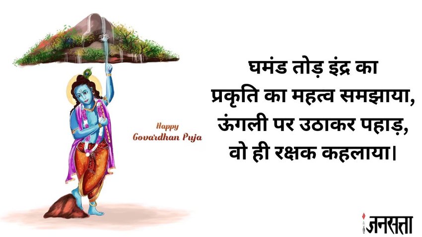 ऐसे में लोग त्योहार को लेकर तमाम तैयारियों में जुटे हैं। इसके साथ ही एक-दूसरे को गोवर्धन की शुभकामनाएं देने का सिलसिला भी शुरू हो चुका है। इसी कड़ी में इस लेख में हम आपके लिए कुछ खास शुभकामना संदेश लेकर आए हैं, जिन्हें आप अपने दोस्तों, परिवार और रिश्तेदारों को भेजकर गोवर्धन पूजा के पर्व को और खास बना सकते हैं। आइए एक नजर डालते हैं इनपर-