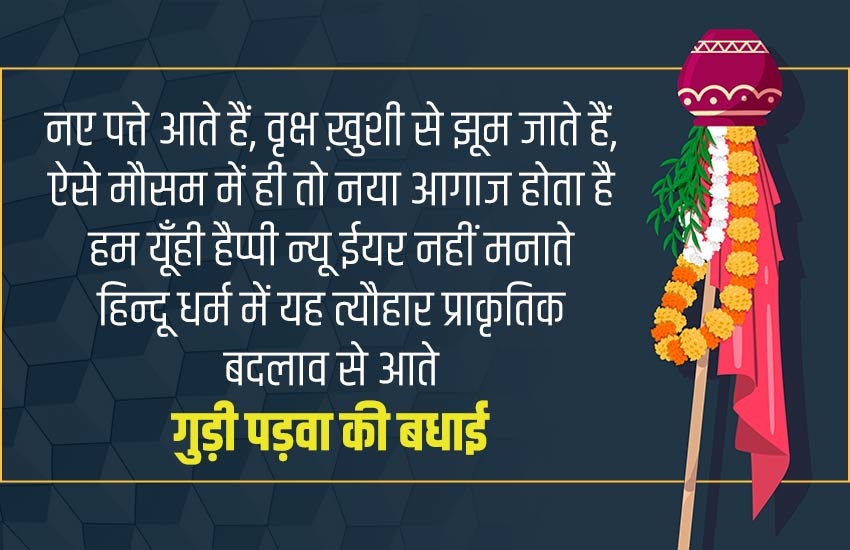 नए साल की शुरुआत के साथ ही किसानों के लिए फसल के मौसम का प्रतीक भी है ये त्योहार। ऐसा भी कहा जाता है कि ब्रह्मा जी आज के ही दिन संसार की रचना की थी। गुड़ी पड़वा के खास मौके पर अपनों से शेयर करें ये बधाई संदेश और उन्हें दें नव वर्ष की शुभकामनाएं –
