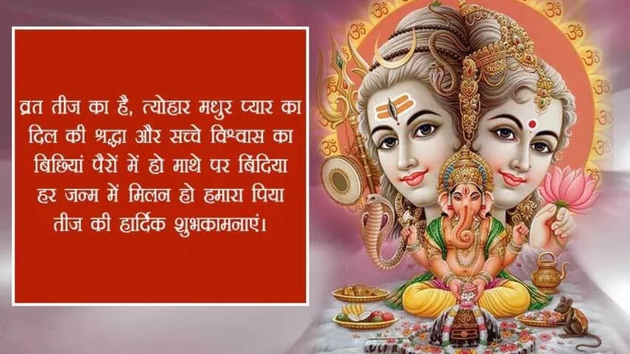 ऐसी मान्यता है कि इस दिन माता पार्वती ने देवो के देव महादेव को कठिन तपस्या करके पति के रूप में प्राप्त किया था। इसलिए इस दिन महिलाएं अखंड सौभाग्य, सुखी वैवाहिक जीवन के लिए प्रार्थनाएं करती हैं। हरे रंगे के परिधानों में 16 श्रृंगार करके पूजा-पाठ किया जाता है। अगर आपने भी ये व्रत रखा है और अपनी सहेली को भेजने के लिए शुभकामना संदेश खोज रही हैं तो यहां हम आपके लिए कुछ चुनिंदा संदेश लेकर आए हैं।