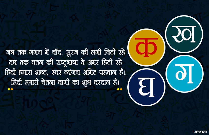 हिंदी हमारा शब्द, स्वर व्यंजन अमिट पहचान है।