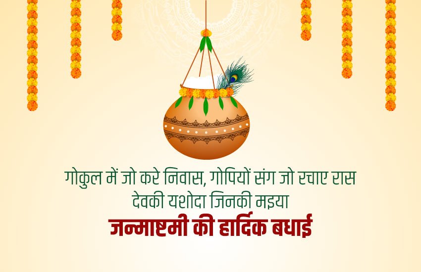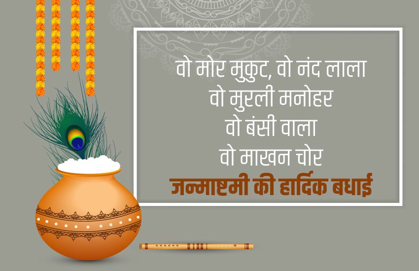 जन्माष्टमी का त्योहार इस बार शुक्रवार और शनिवार के दिन सेलिब्रेट किया जा रहा है। बता दें कि कृष्ण जन्माष्टमी भद्रपद माह के कृष्ण पक्ष की अष्टमी तिथि यानी कि आठवें दिन मनाई जाती है। जन्माष्टमी का त्योहार हिंदूओं के लिए बहुत महत्वपूर्ण माना जाता है। जन्माष्टमी का त्योहार भगवान श्री कृष्ण के जन्मदिवस के रूप में सेलिब्रेट किया जाता है। कई लोग जन्माष्टमी के मौके पर श्री कृष्ण जन्माष्टमी कथा का पाठ करते हैं। तो वहीं कई लोग पूरे दिन भूखे और प्यासे रह कर भगवान श्री कृष्ण के लिए व्रत रखते हैं। इस जन्माष्टमी के शुभ अवसर पर आप अपने दोस्तों और रिश्तेदारों को मैसेज, कोट्स और इमेजेज भेजकर शुभकामनाएं दे सकते हैं।