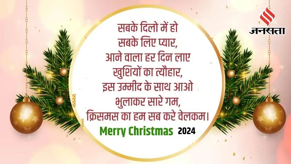Happy Christmas Day 2024 Hindi Wishes Images, Quotes, Status, Messages, Greetings in Hindi LIVE: 25 दिसंबर को पूरी दुनिया में क्रिसमस का त्योहार बड़े धूमधाम के साथ मनाया जाता है। ईसाई लोगों का प्रमुख त्योहार क्रिसमस अब सिर्फ एक धर्म तक सीमित नहीं है। अब इसको हर धर्म के लोग खूब उत्साह के साथ सेलिब्रेट करते हैं। क्रिसमस के दिन लोग चर्च में प्रार्थना करते हैं। इस मौके पर लोग केक काटते हैं और जमकर पार्टी भी करते हैं। क्रिसमस पर लोग अपने घरों और क्रिसमस ट्री को सजाते हैं। इस दिन गिफ्ट देने की भी परंपरा है।