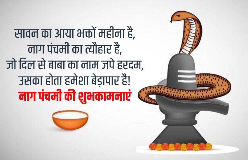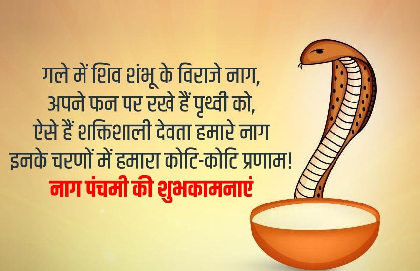 मान्यता है कि अगर नाग पंचमी के दिन किसी को नागों के दर्शन होते हैं तो उसे बेहद शुभ माना जाता है। मन को शिव के प्रति समर्पण के उद्देश्य से भी नाग पंचमी पर सांप को दूध पिलाया जाता है। नाग (सांप) को शिव का सेवक भी कहा जाता है। नाग पंचमी के इस खास त्यौहार के मौके पर आप अपने दोस्तों और रिश्तेदारों को मैसेज, कोट्स और इमेजेज के जरिए इस दिन की शुभकामनाएं दें।