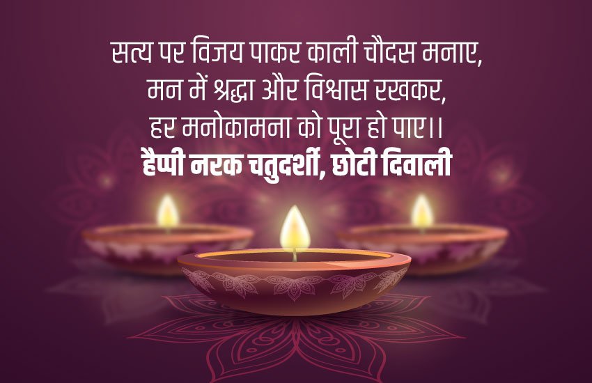 Happy Naraka Chaturdashi 2019 Wishes Images, Quotes, Wallpapers, SMS, Messages, Status, Pics: दिवाली के एक दिन पहले छोटी दिवाली या नरक चतुर्दशी के रूप में मनाया जाता है। यह छोटे स्तर पर दीवाली है, जिसमें कम रोशनी और कम पटाखे फूटते हैं। इस साल छोटी दिवाली 26 अक्टूबर को देशभर में सेलिब्रेट किया जाएगा। हिंदू घरों में, छोटी दिवाली के उत्सव के मौके पर देवी लक्ष्मी की और शाम को राम की पूजा होती है। देवता के सम्मान में गीत गाए जाते हैं और आरती भी की जाती है। नरक चतुर्दशी से पहले वाले दिन, भगवान कृष्ण के दिव्य हस्तक्षेप से दानव, नरकासुर का वध हुआ था। इस खास मौके को और यादगार बनाने के लिए आप अपने दोस्तों और रिश्तेदारों को मैसेज, कोट्स और इमेजेज भेजकर छोटी दिवाली विश कर सकते हैं।