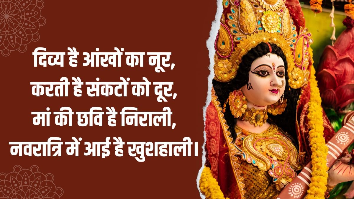 गौरतलब है कि हिंदू धर्म में नवरात्रि के 9 दिन किसी उत्सव की तरह मनाए जाते हैं। इन दिनों भक्त देवी दुर्गा के 9 स्वरूपों की पूजा-अर्चना करते हैं और मां के नाम का उपवास भी रखते हैं। हालांकि, किसी भी त्योहार की तरह ही नवरात्रि की शुरुआत भी लोग एक-दूसरे को ढेरों बधाइयां देकर करते हैं। इसी कड़ी में यहां हम आपके लिए कुछ ऐसे ही चुनिंदा संदेश और तस्वीरें लेकर आए हैं। आप इन्हें अपने स्टेटस पर लगा सकते हैं या अपनों को ये संदेश और तस्वीरें भेजकर नवरात्रि के पर्व की शुभकामनाएं भी दे सकते हैं।