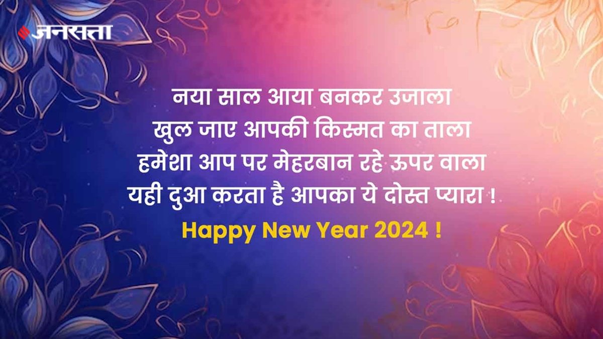 Happy New Year 2024 Wishes images, Hindi Shayari, quotes, status, messages, Naya Saal Mubarak Ho Shubhkamnaye: साल 2024 का आगाज हो चुका है। नए साल का पहला सूर्योदय भी हो चुका है। नया सूरज नई उम्मीदें और नया उमंग लेकर आया है। नए साल के आगमन के साथ ही लोग एक दूसरें को नव वर्ष की शुभकामानएं भेज रहे हैं। मोबाइल या इंटरनेट के जरिए आप भी दुनिया के किसी भी कोने में बैठे अपने प्रियजन को शुभकामना संदेश बेज सकते हैं। आगर आप नए साल पर अपनों को यादगार शुभकामनाएं भेजना चाहते हैं तो हम आपके लिए बेहतरीन तस्वीरें, खूबसूरत संदेश, बेमिसाल शायरियां और जोरदार कोट्स लेकर आए हैं।