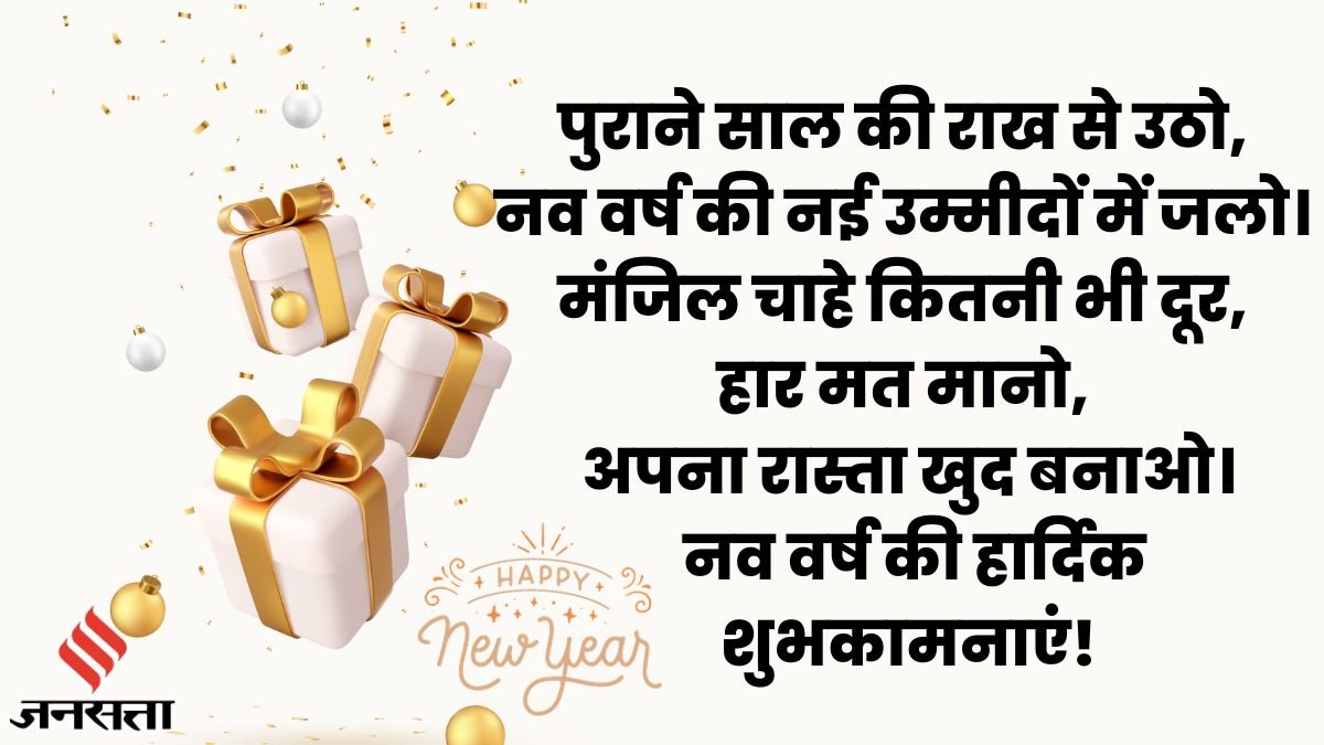Happy New Year 2024 Wishes images, Hindi Shayari, quotes, status, messages, photos, Naya Saal Mubarak Ho Shubhkamnaye Sandesh: साल 2024 का आगाज हो चुका है। ऐसे में हर ओर न्यू ईयर की धूम देखने को मिल रही है। नए साल का स्वागत करने के लिए लोगों ने तमाम तैयारियां भी की हैं। इसके साथ ही एक-दूसरे को बधाई देने का सिलसिला भी जारी है। वहीं, अगर इस साल आप अपने दोस्तों, रिश्तेदारों और परिवार के लोगों को केवल बोरिंग टेक्स्ट न लिखकर खास अंदाज में नए साल की बधाई नहीं देना चाहते हैं, तो ऐसे में हम आपकी मदद कर सकते हैं। यहां हम आपके लिए कुछ बेहद खास बधाई संदेश और तस्वीरें लेकर आए हैं। इन शानदार फोटोज और बधाई संदेशों के साथ आप अपनों को न्यू ईयर की शुभकामनाएं दे सकते हैं।