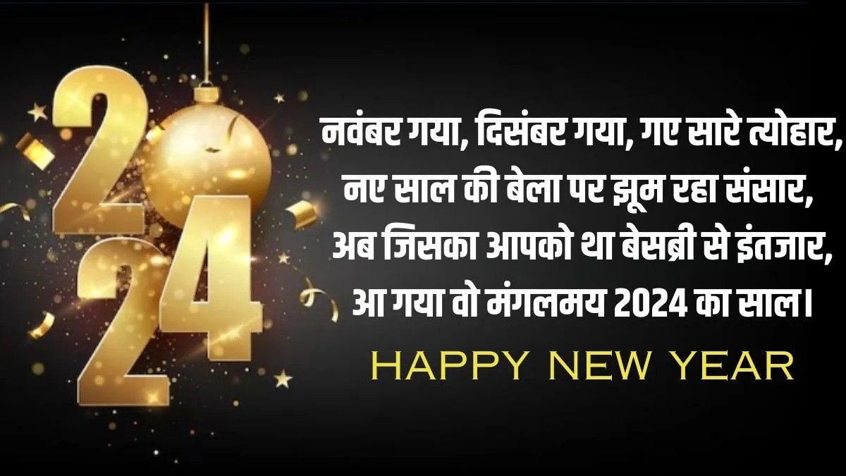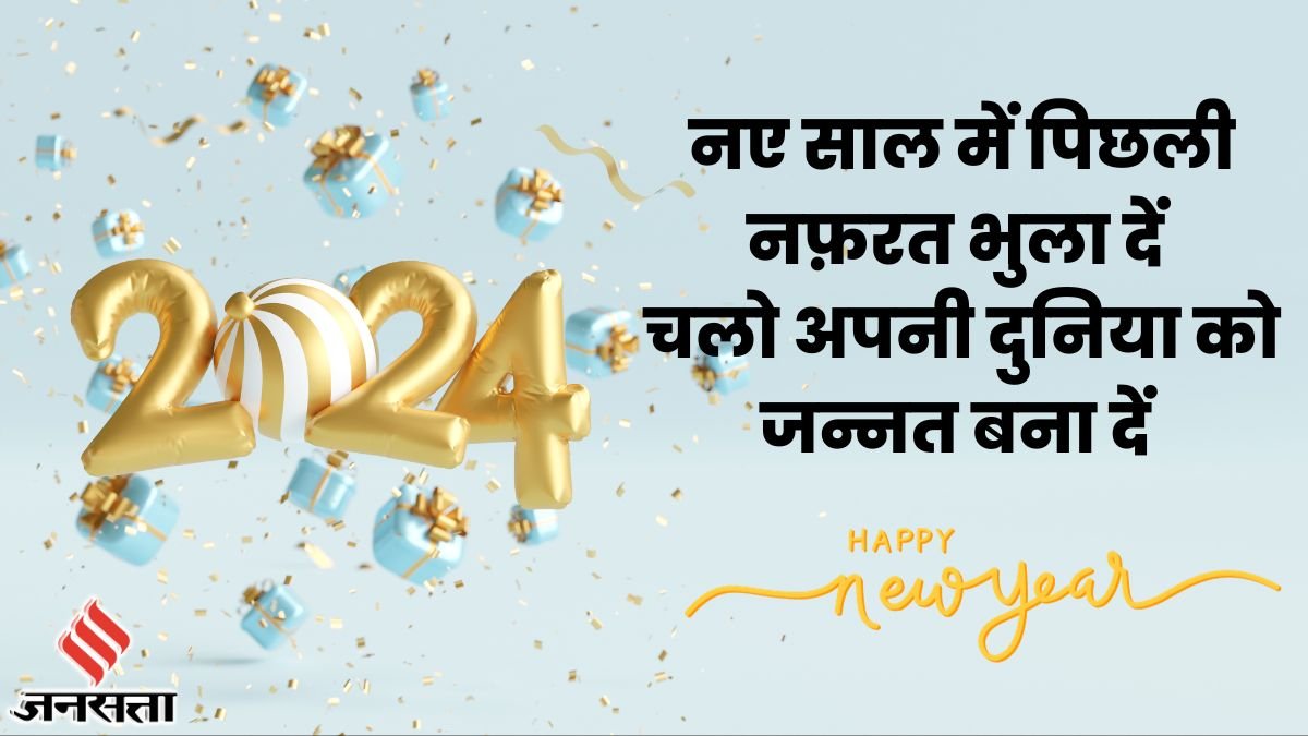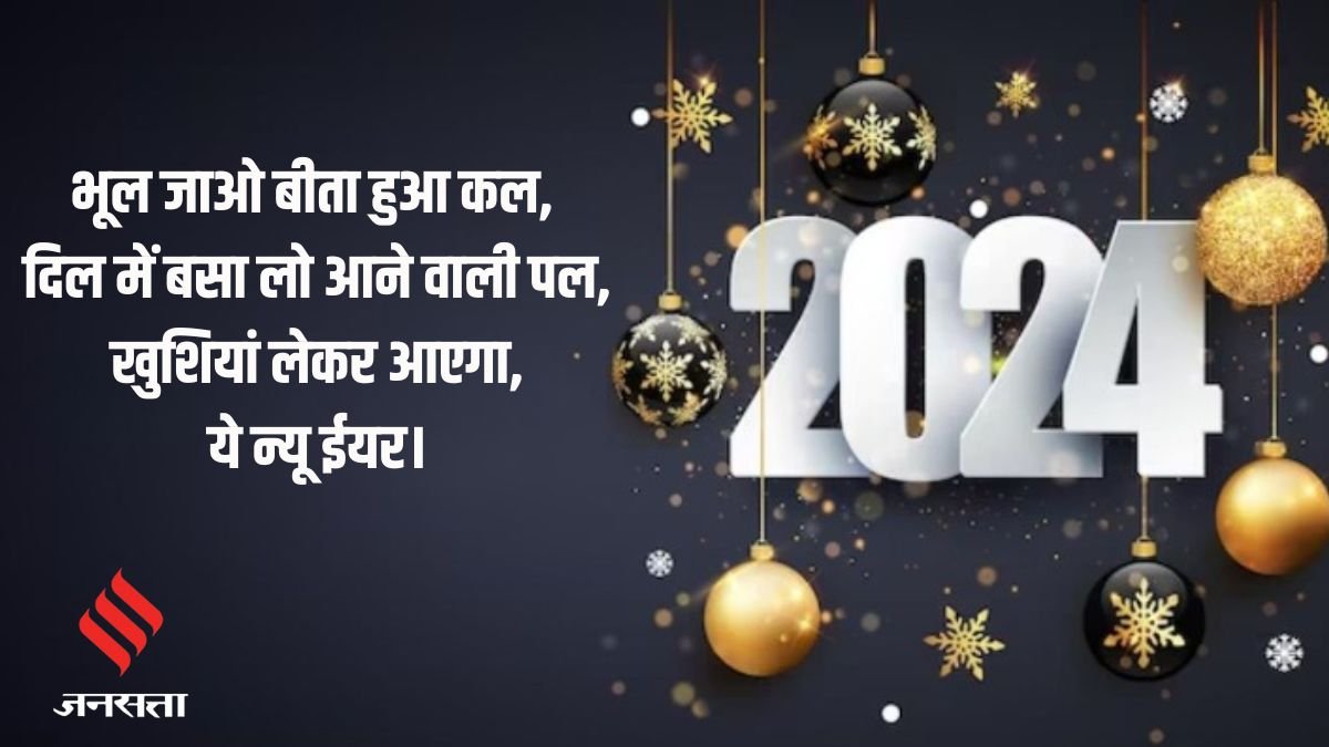 Happy New Year 2024 Wishes images, Hindi Shayari, quotes, status, messages, photos, Naya Saal Mubarak Ho Shubhkamnaye Sandesh: साल 2024 का आगाज हो चुका है। ऐसे में हर ओर न्यू ईयर की धूम देखने को मिल रही है। नए साल का स्वागत करने के लिए लोगों ने तमाम तैयारियां भी की हैं। इसके साथ ही एक-दूसरे को बधाई देने का सिलसिला भी जारी है। वहीं, अगर इस साल आप अपने दोस्तों, रिश्तेदारों और परिवार के लोगों को केवल बोरिंग टेक्स्ट न लिखकर खास अंदाज में नए साल की बधाई नहीं देना चाहते हैं, तो ऐसे में हम आपकी मदद कर सकते हैं। यहां हम आपके लिए कुछ बेहद खास बधाई संदेश और तस्वीरें लेकर आए हैं। इन शानदार फोटोज और बधाई संदेशों के साथ आप अपनों को न्यू ईयर की शुभकामनाएं दे सकते हैं।